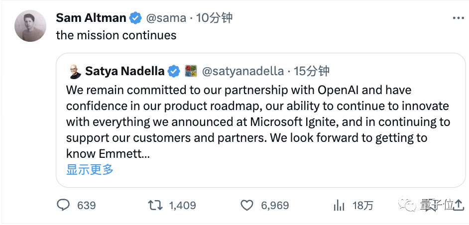 没想到,时间才不过三小时,彼时大西洋那边都即将进入半夜了,奥特曼和微软CEO直接又放了个大的。