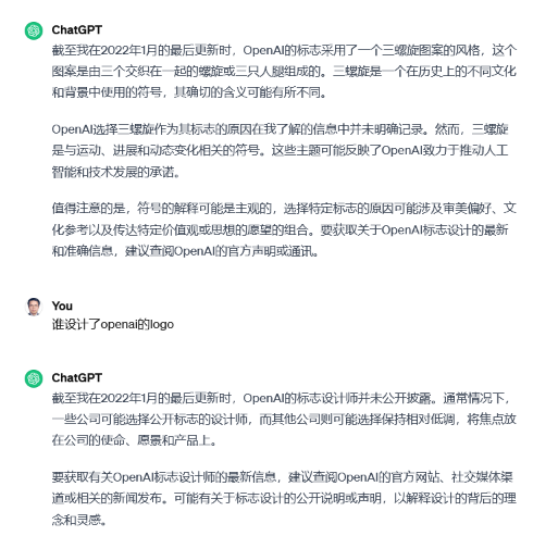 是OpenAI公司的LOGO,这个LOGO如果是人工设计而非人工智能生成的,属于美术作品,受《著作权法》保护。笔者注意到,部分通过初审的ChatGPT商标将该LOGO作为了商标的图形,根据我国《商标法》第三十二条第一款规定,申请商标注册不得损害他人现有的在先权利。著作权也是在先权利的一种,所以OpenAI可以主张这些商标侵犯其著作权对其进行商标异议。下面是ChatGPT提供的LOGO的设计思路。