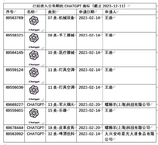 下图是笔者初步查询到的目前CHATGPT的注册及公告情况: