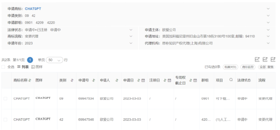但具有讽刺意味的是,ChatGPT一词用到本文之前提到的医药、机械等十多个其他类别上,倒是具有显著性的,到时候OpenAI自己的“ChatGPT”商标被无效,他人在其他类别上申请的“ChatGPT”商标倒是可以继续获得注册,这就比较讽刺了。