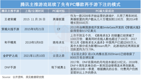 具体来看,在PC端爆火的游戏,腾讯会投入大量资源端转手,比如,移动化时代的《王者荣耀》,就脱胎于大DAU游戏《英雄联盟》。