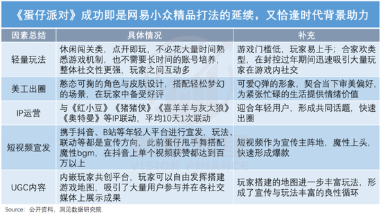 可以看到,《蛋仔派对》正是网易“小众爆款”套路的延伸:通过轻量玩法、强社交、UGC平台、强美工设计、快速赛季更迭等,把休闲品类精品玩到极致。