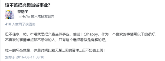 蔡浩宇:把兴趣当做事业十分快乐 图源:知乎