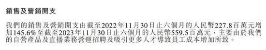 虽是玩笑话,但是从财报数据上来看,显然利润率不升反降。实际上,2023财年下半年(2022年12月-2023年5月),东方甄选为了挖掘新流量已经加大了销售及营销开支,下半年相较于2023财年上半年环比增长70%,已经导致下半年净利润环比下降32.8%至3.9亿元。
