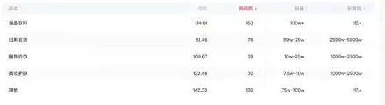 而董宇辉直播间的食品饮料、日用百货、生鲜蔬果、图书音像、其他的品类均价皆不到100元。