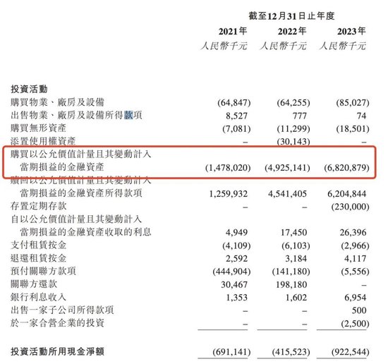 最近三年,茶百道的现金流也非常充足。2021年至2023年,茶百道经营活动现金流均为正,投资活动现金流为负,详读招股书发现,茶百道投资活动现金流主要用户购买理财产品。如果一家公司在满足生产经营开支后,还有大额资金用户购买理财产品,说明这家公司主营业务造血能力相当不错。