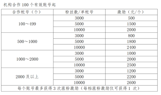 补贴根据粉丝量分为三个等级:第一档3000粉丝,第二档5000粉丝,第三档10000粉丝,每达到一个档次则享有美团的一次现金奖励;个人、企业/机构旗下的达人,奖金可累计叠加3次,个人帐号最多可获得3500元的现金奖励,现金奖励,上不封顶。