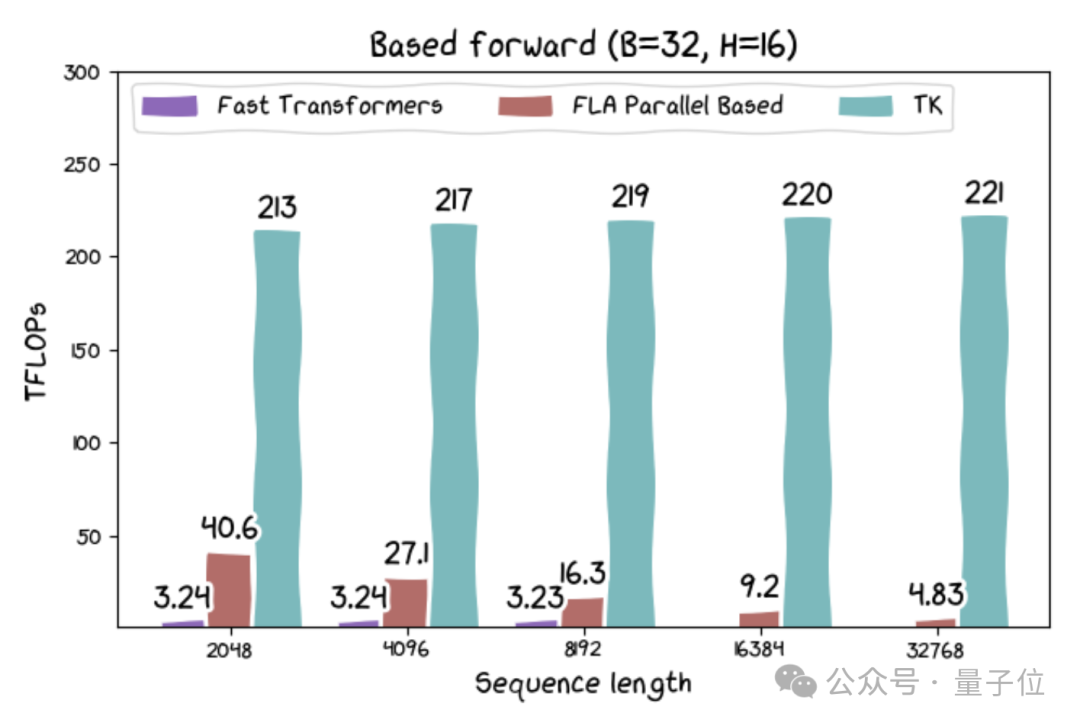 △FA2(通过Pytorch实现)与TK在H100 SXM上的多种配置比较此外,研究人员还发布了基于线性注意力和其他新架构的内核。其中基于线性注意力的内核的运行速度可达215 TFLOPs,如果考虑到算法中固有的重计算,速度可超过300 TFLOPs。