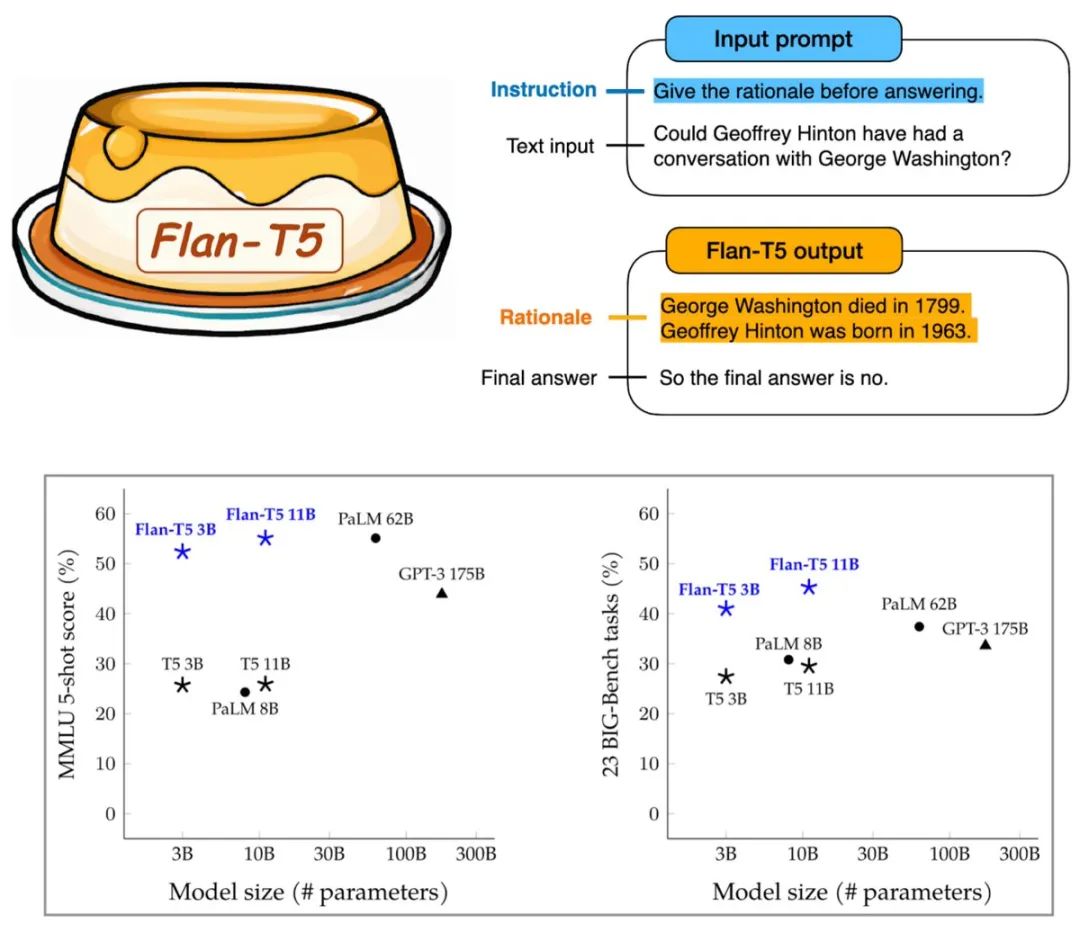 从公开的信息来看,我们知道T5-11B即使在对齐/SFT后也能很好地工作(Flan-T5 XXL的MMLU分数为55+,对于当时这种规模的模型来说已经相当不错了)。