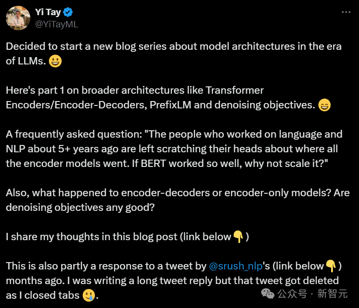 而且Yi Tay还表示,这只是系列博客文章的第一弹,后续还可以期待他关于「LLM时代的模型架构」这一话题的更多内容。