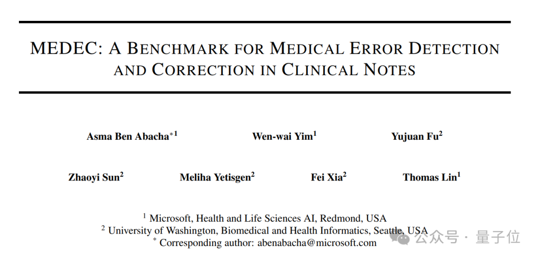 实际上,原论文介绍了一项与医学相关的benchmark——MEDEC。