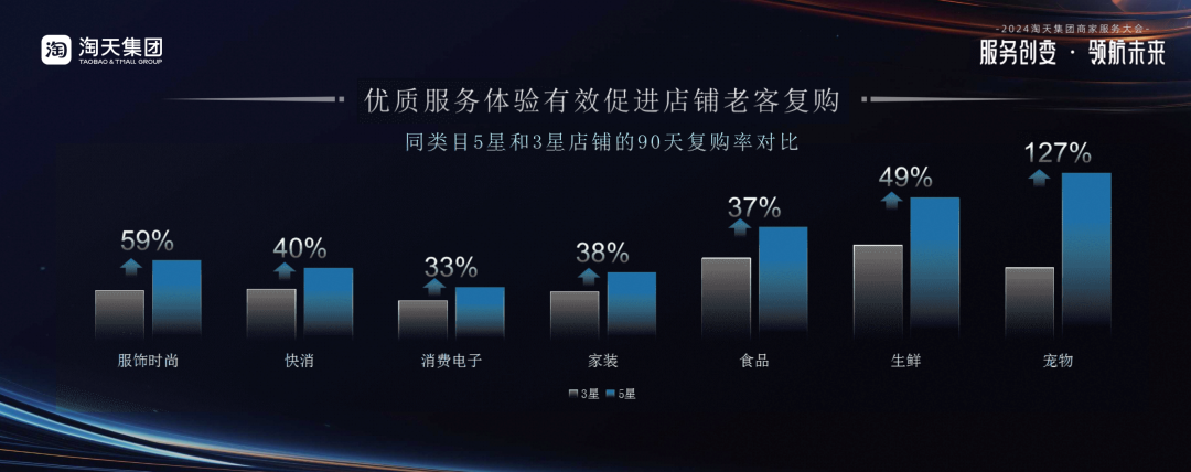 根据最新数据,淘宝天猫宠物类目中,5星店铺复购率能比3星店铺高出127%。