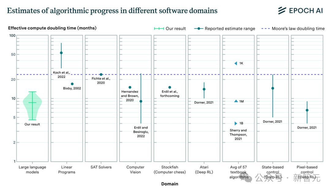 2020年,我的团队就发表论文指出,算法进步带来的曲线位移每年约为1.68倍。这个速度现已显著提升,且尚未考虑效率和硬件因素。