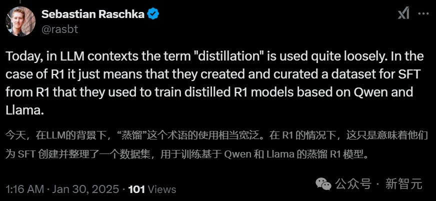 他表示,在LLM的背景下,‘蒸馏’这个术语的使用已经相当宽泛。