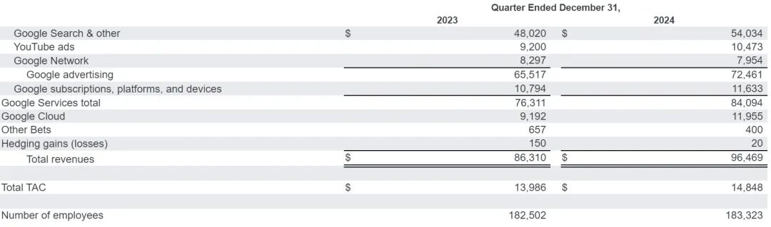 Alphabet在2024年第四季度Google subscriptions, platforms, and devices收入为116.33亿美元,上年同期的营收为107.94亿美元。
