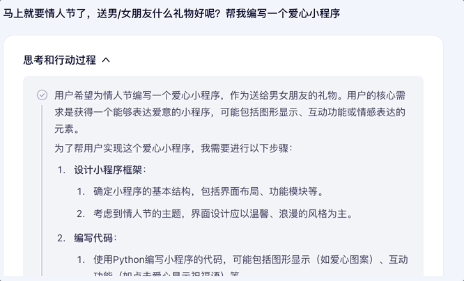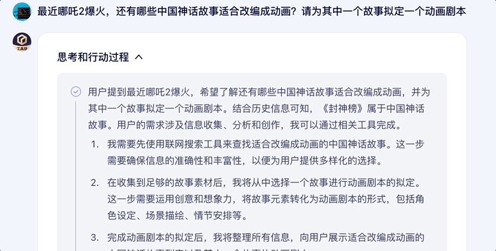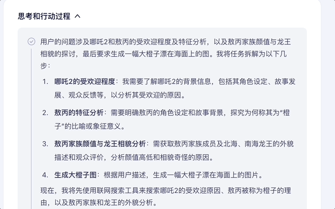 其回答过程是先对用户核心需求进行分析将问题划分步骤,然后调用工具进行搜索思考整理,最后思考完成输出结果。