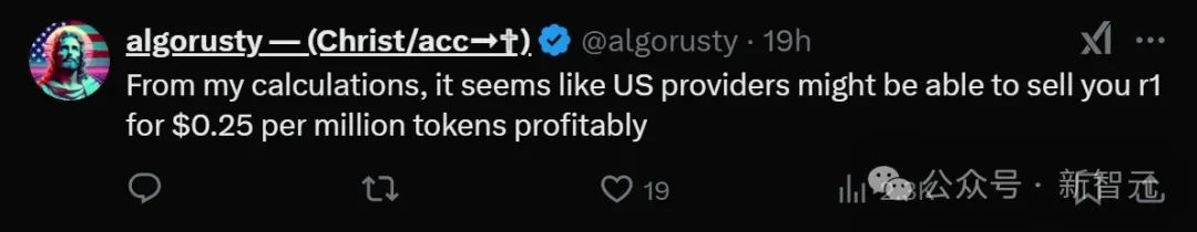 网友algorusty则声称,有了这次的优化后,美国供应商能够以每百万token 0.25美元的价格提供R1。
