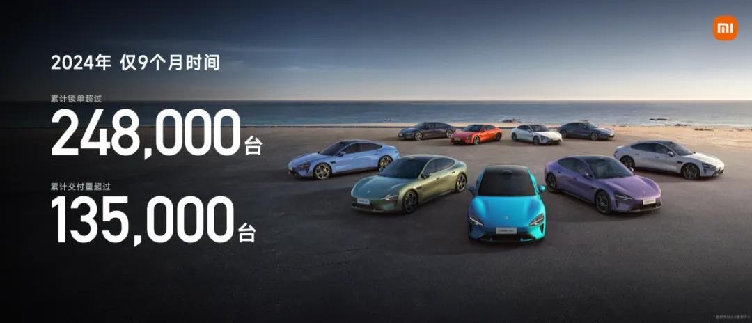雷军说,小米汽车作为汽车产业的新人,在去年仅仅9个月的时间里,销售锁单24.8万辆,交付超过13.5万辆。