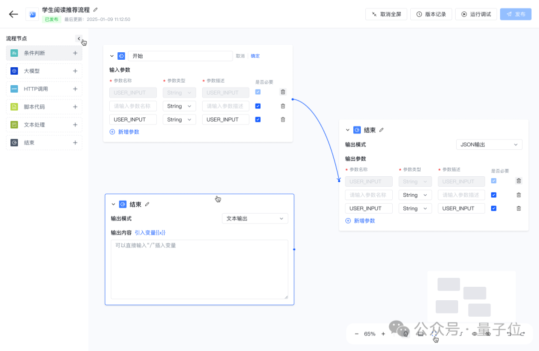 可视化流程编排:通过可视化画布,用户可以拖拽节点迅速搭建工作流,并且还能够实时调试工作流,确保每个流程节点的准确性和可解释性,从而有效释放个人与企业的生产力;