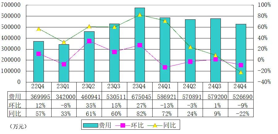 理想汽车2024年第四季度的营业费用为53亿元(7.2亿美元),较2023年第四季度的68亿元减少22%,较2024年第三季度的58亿元减少9.1%。
