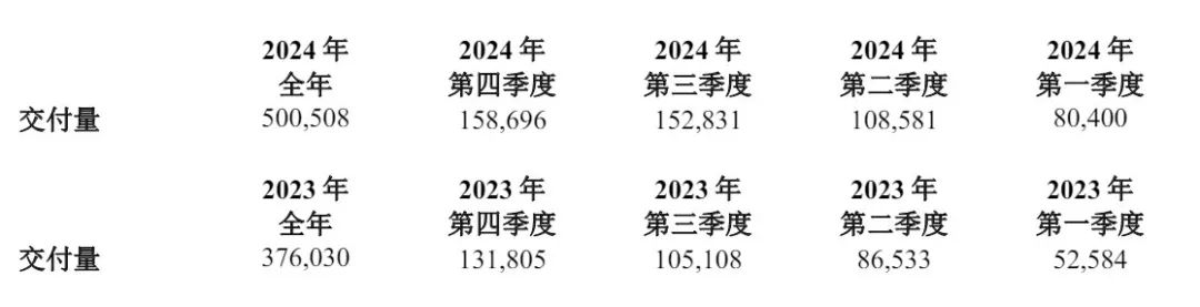 理想汽车2024年交付量达500,508辆,较2023年的376,030辆增长33.1%。