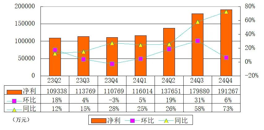 奇富科技2024年第四季度净利润为19.13亿元(2.62亿美元),而2023年同期则为11亿元,上季度为18亿元。