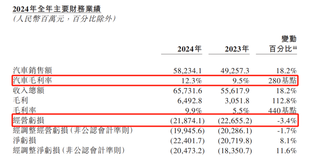 2024年,蔚来交付22.2万辆车,同比增长38.7%;营收657.3亿元,同比增长18.2%,收入创出新高,但净亏损也达到224亿元,同比扩大8.1%。
