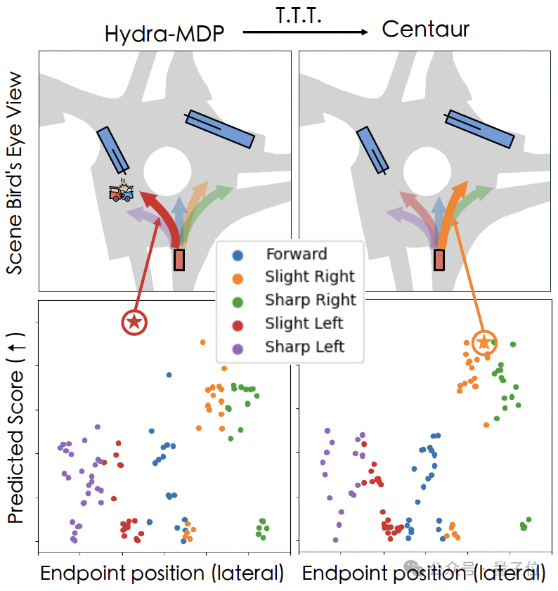 Centaur在测试推理过程中动态地调整模型权重,适应OOD场景,提升泛化能力。模型利用Cluster Entropy作为自监督信号,并首次将Test-Time Training(TTT)应用于端到端自动驾驶,避免手动规则和成本函数,实时减少不确定性并改进预测,借由在线数据驱动实现了轨迹预测的可扩展性。