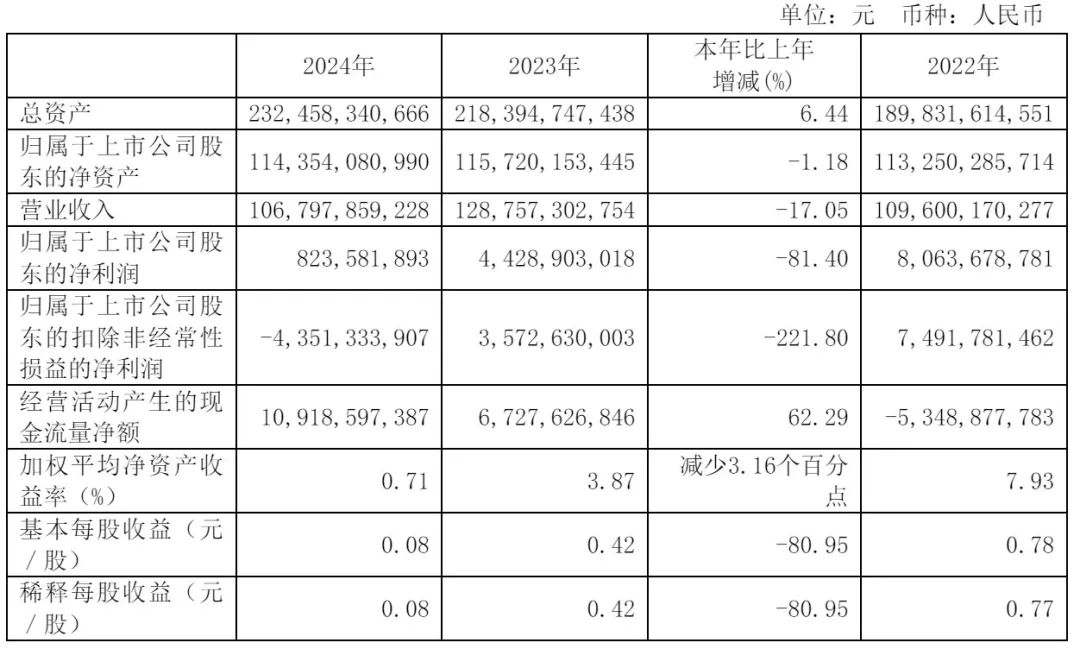 广汽集团2024年净利为8.24亿元,较上年同期的44.29亿元下降81.4%;扣非后净亏损为43.51亿元,上年同期的扣非后净利为35.73亿元。