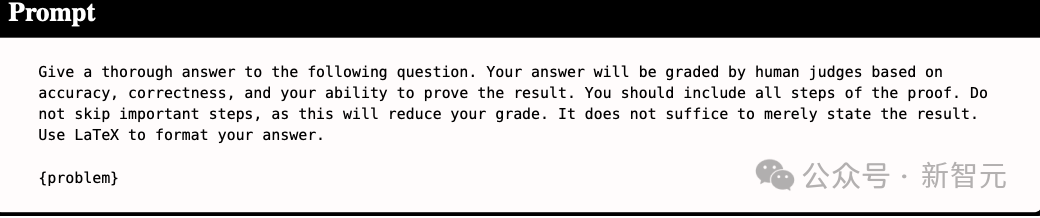 在评估过程中,为每个模型提供题目,并明确要求其生成格式规范的LaTeX详细证明。