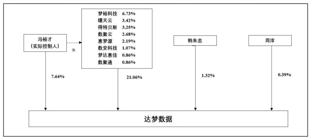 冯裕才为梦裕科技、曙天云、得特贝斯、数聚云的执行事务合伙人;中国软件、中电金投同受中国电子信息产业集团有限公司控制,为一致行动人。