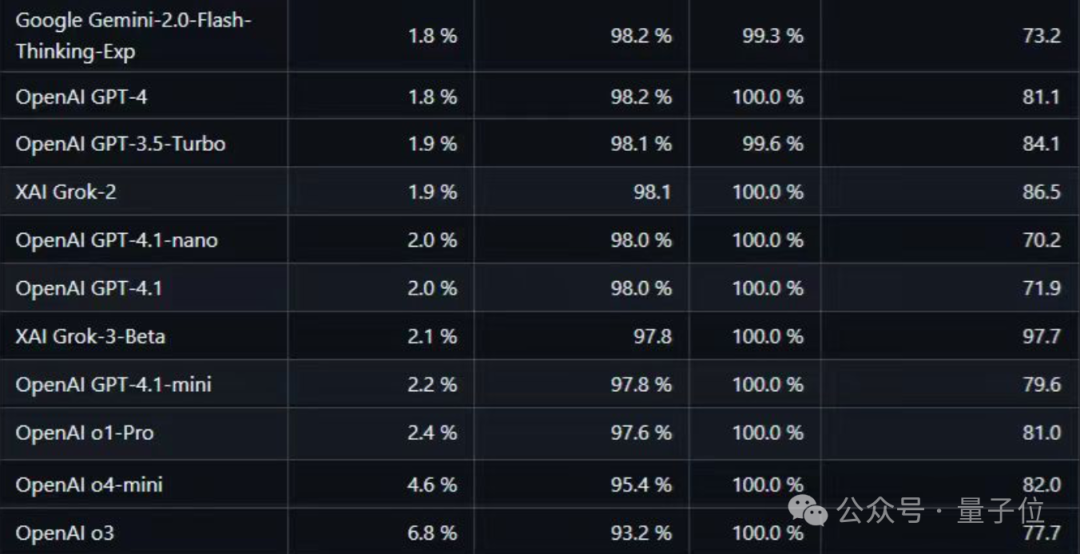 而且不只OpenAI一家出现这个问题,谷歌、xAI也同样,Grok-3的幻觉比Grok-2严重,Gemini-2.0-Flash-Thinking的幻觉问题比Gemini 2.0和2.5其他型号严重。