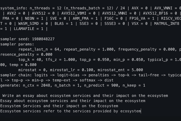 单CPU生成97个token,总耗时3.452秒,每秒处理 28.1 token。