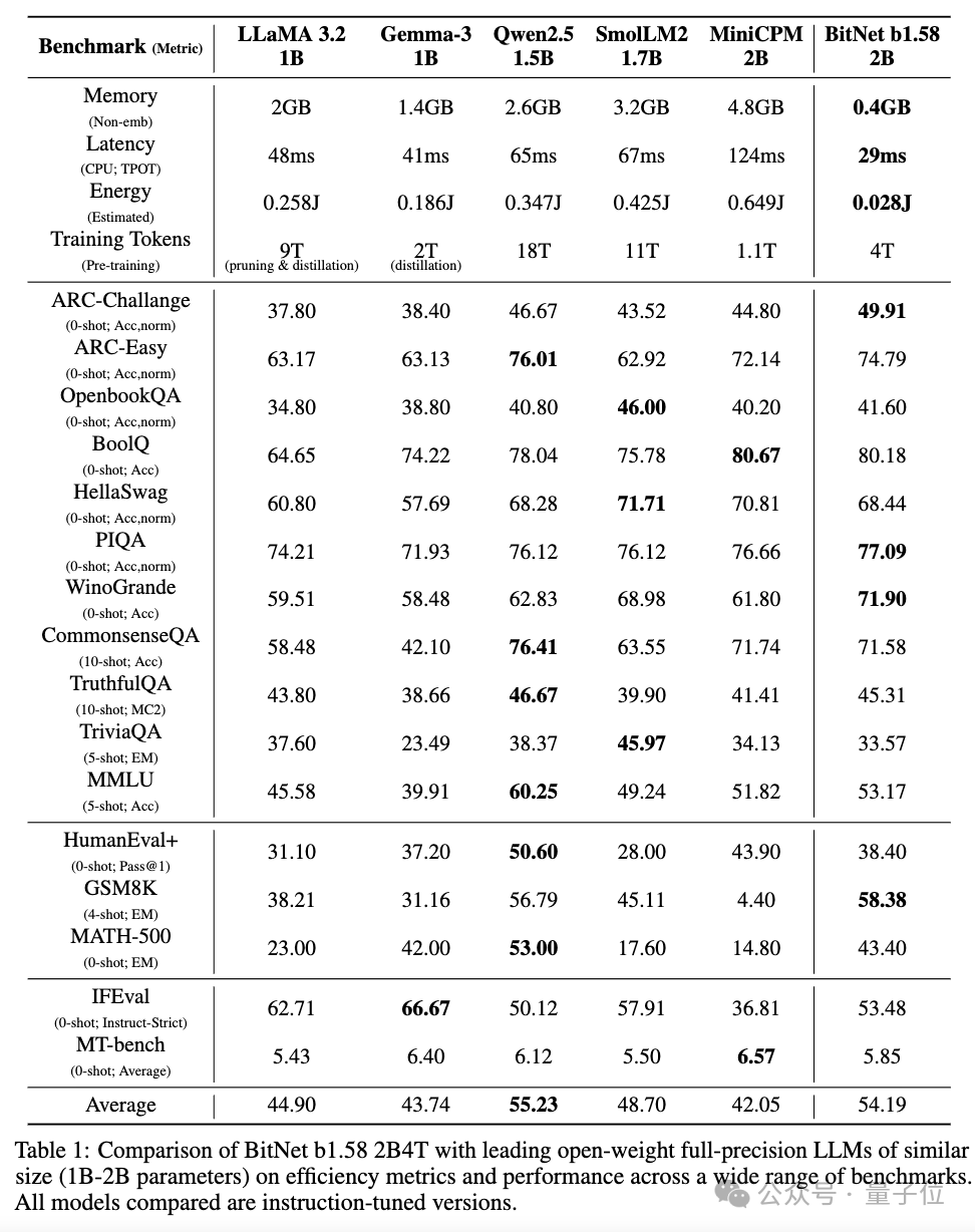 微软以小搏大,发布首个开源2B参数规模“原生1bit”LLM——
