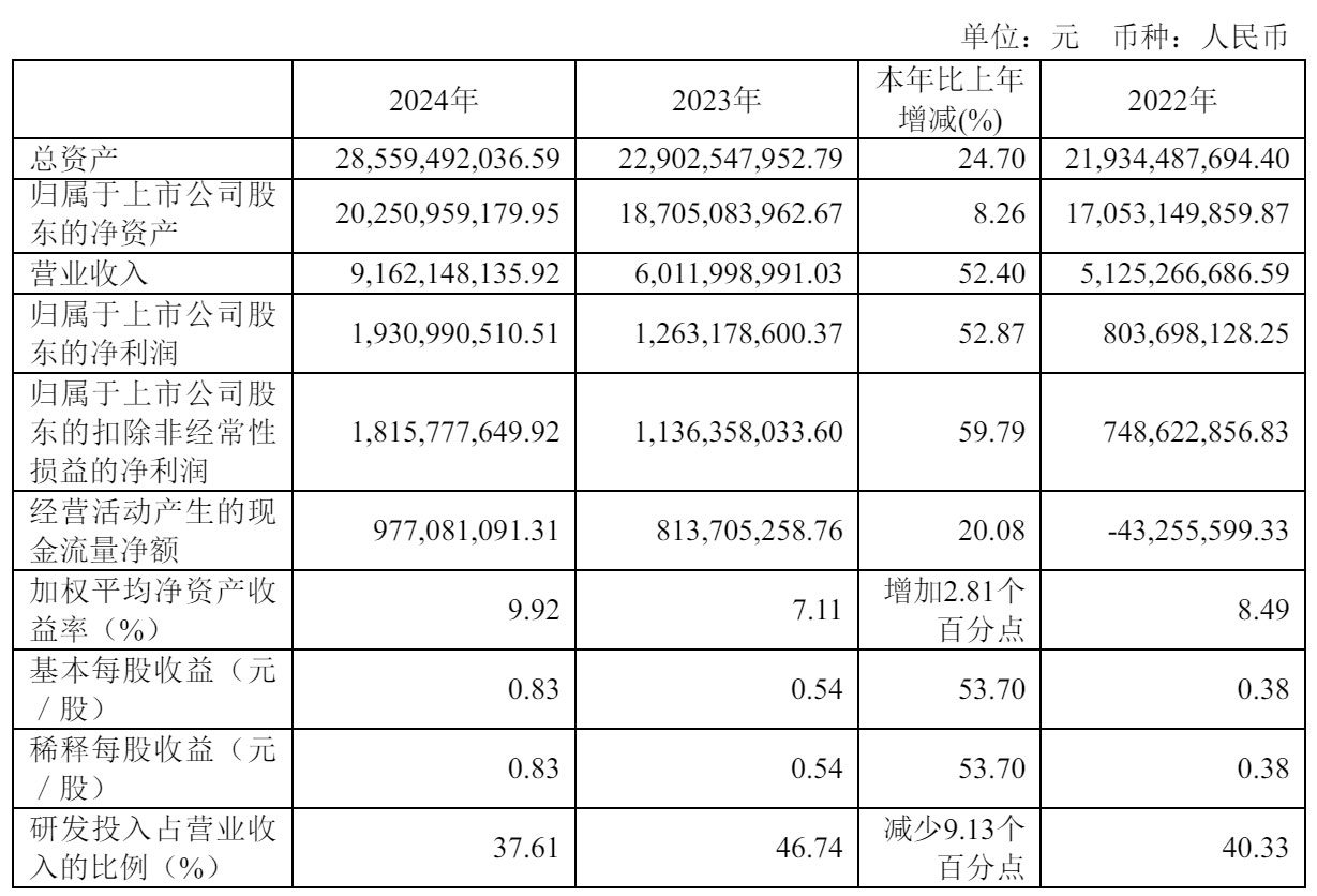 海光信息技术股份有限公司(公司代码:688041,公司简称:海光信息)日前发布财报。财报显示,海光信息2024年营收为91.62亿元,较上年同期的60亿元增长52.4%。