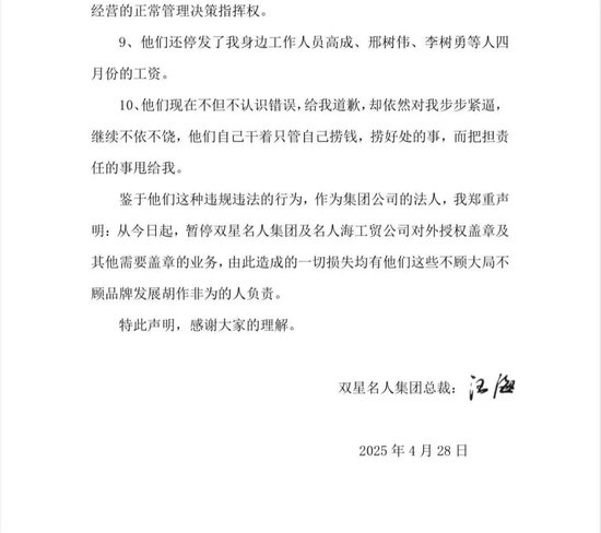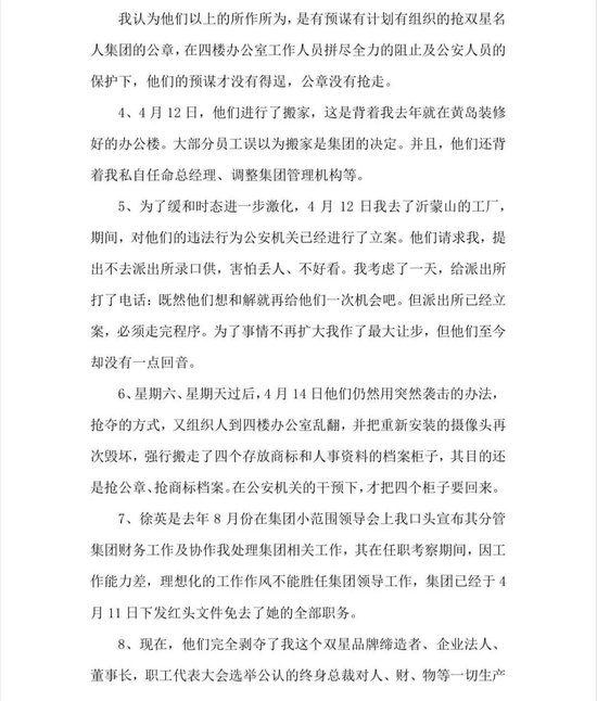 事后,有记者致电双星名人集团下属有关企业,对方予以否认,有知情人表示,正在追溯这封信的来源。