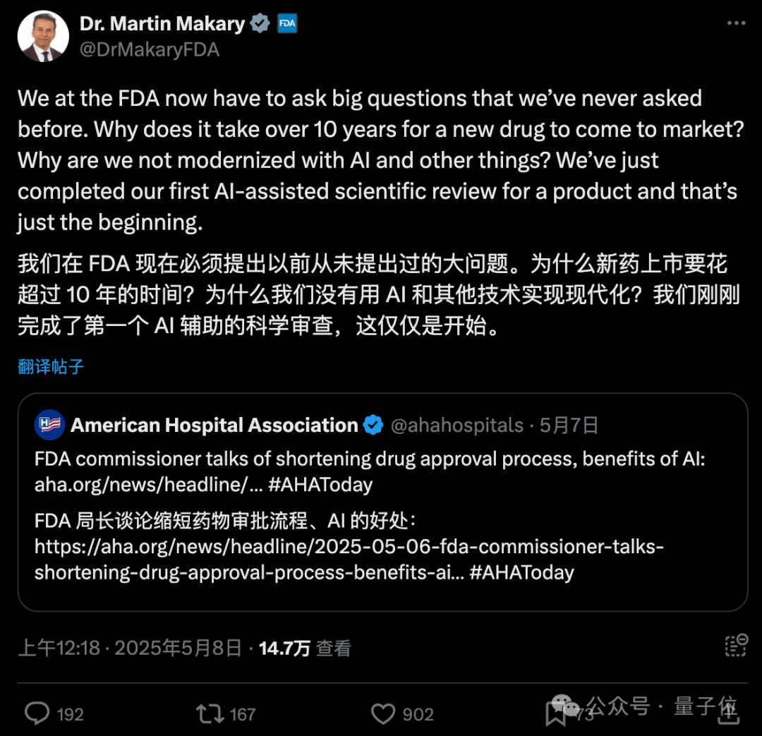 至于为什么要做这么个事,FDA局长Marty Makary在X上发表了他的看法: