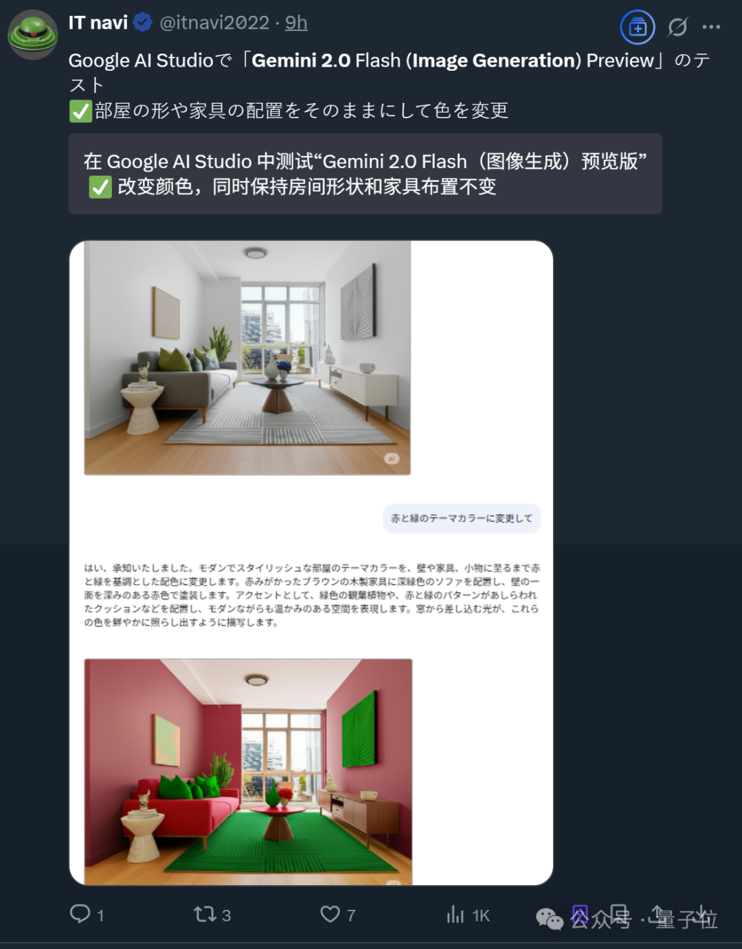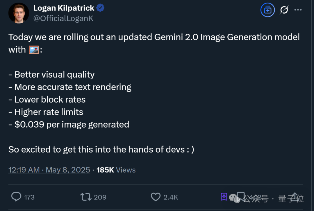 与之前的实验版本相比(Gemini 2.0 Flash Experimental),这一次主打图像质量更好、文本渲染更准确,生成速度更快。