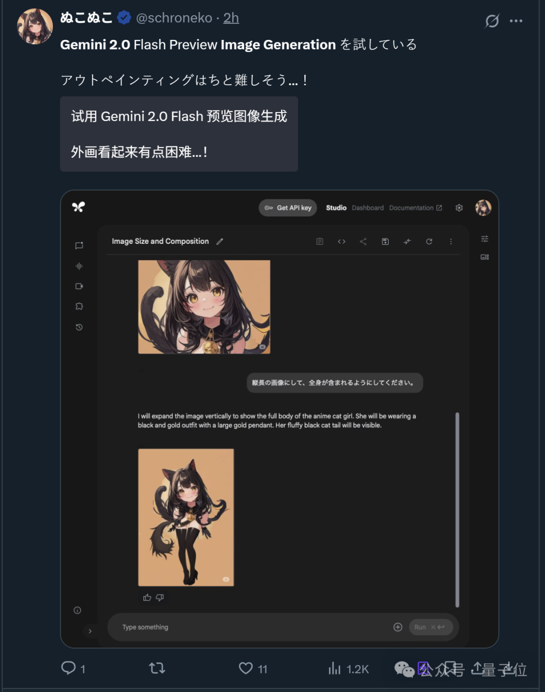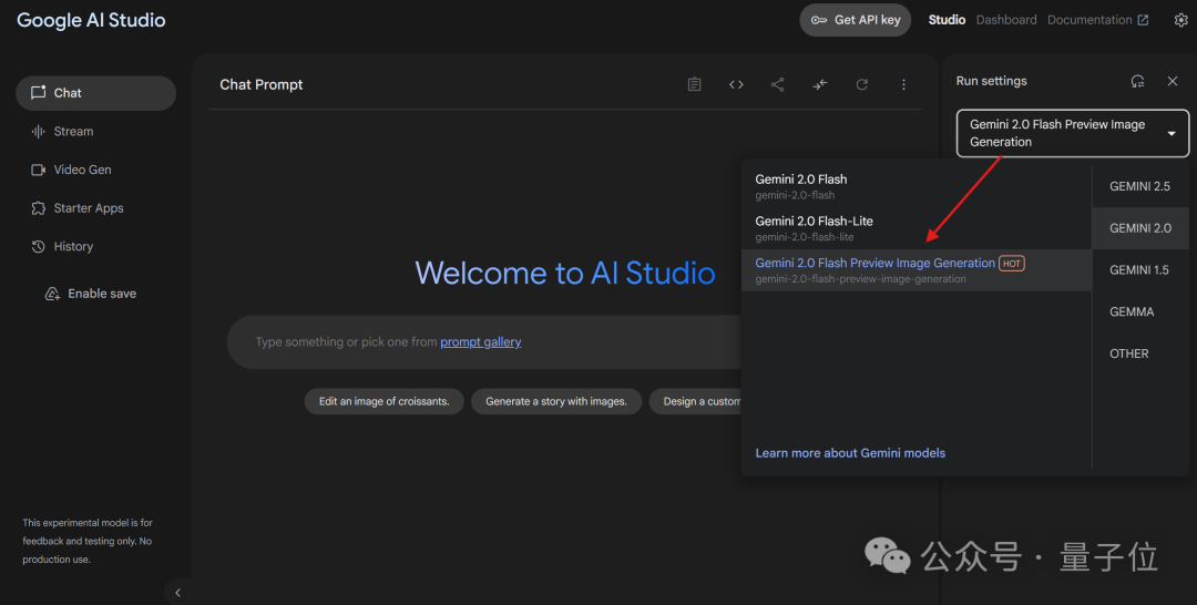 现在,这些功能都可以在Google AI Studio免费试玩,模型请认准“gemini-2.0-flash-preview-image-generation”。