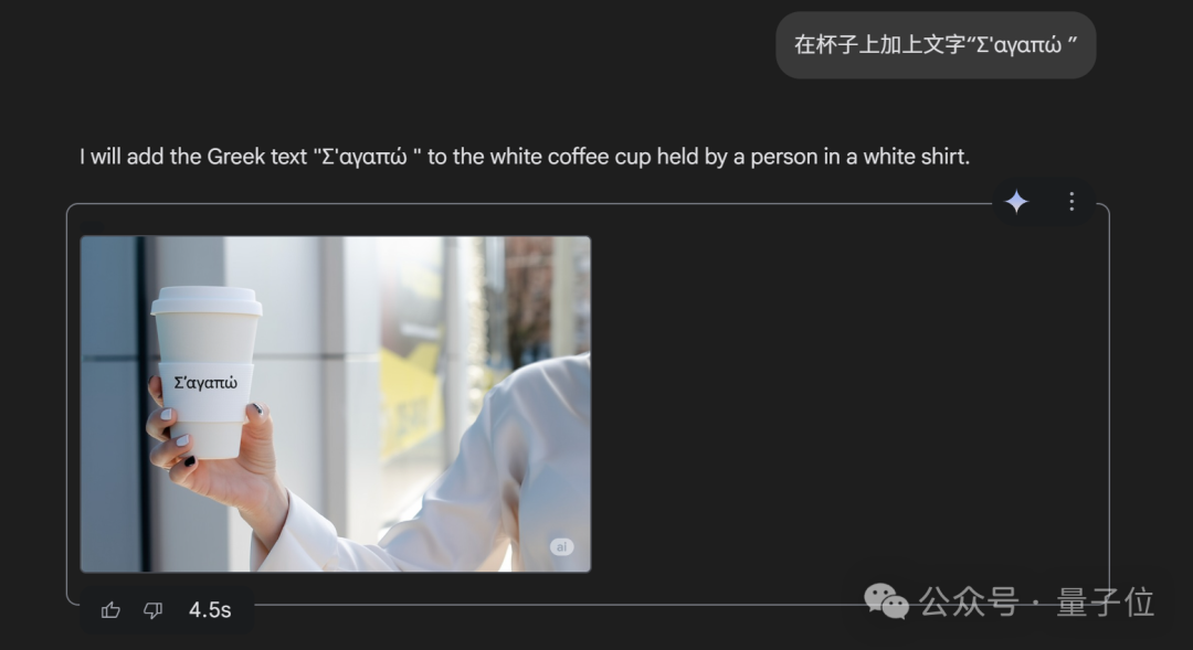 继续换成希腊文(中译为“我爱你”)也有同款优秀表现,仔细对比未发现渲染错误。