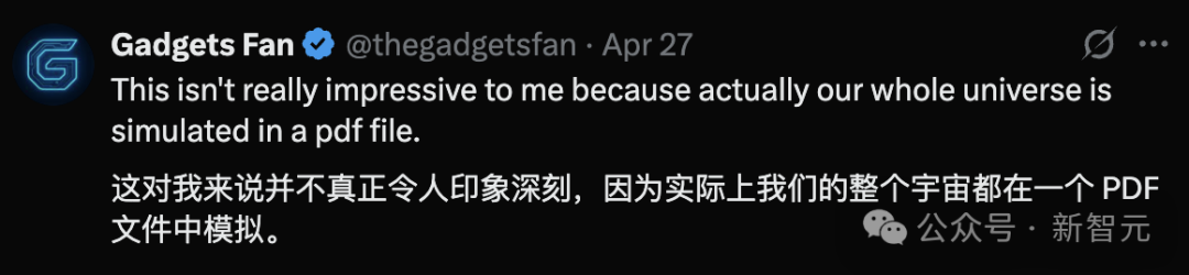 网友Gadgets Fan甚至开玩笑说:「这不算啥,毕竟我们整个宇宙可能都在一个PDF里模拟运行呢!」