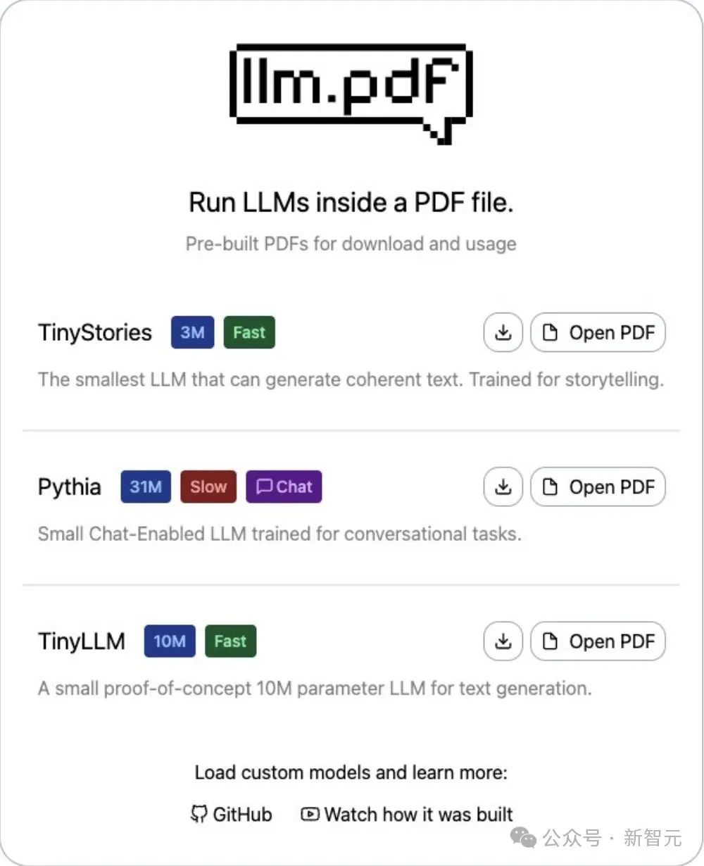 「llm.pdf」的项目在PDF里面,嵌入了几个小型语言模型(SLM),比如TinyStories(3M参数)、Pythia(31M参数)和TinyLLM(10M参数)。
