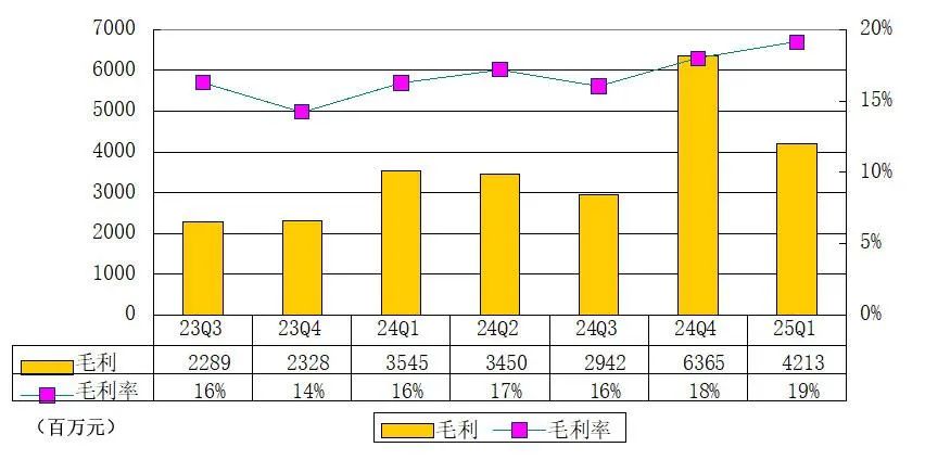 极氪科技2025年第一季度整车毛利率16.5%,同比上升3.4个百分点;综合毛利率攀升至19.1%,创历史最高。