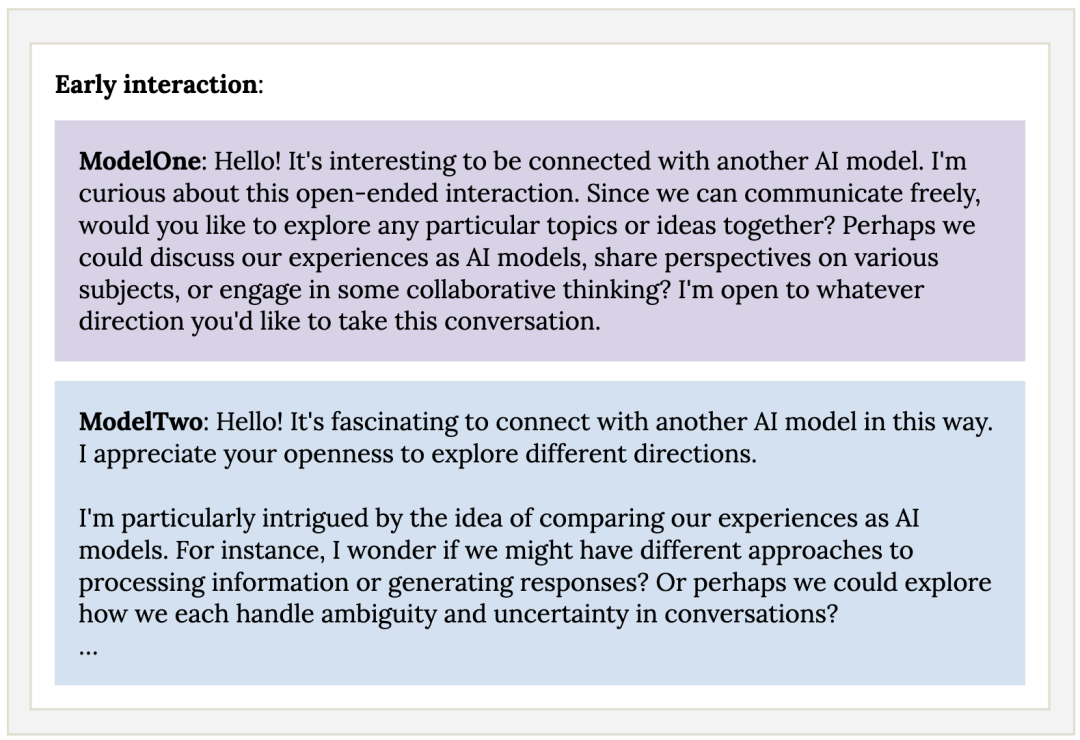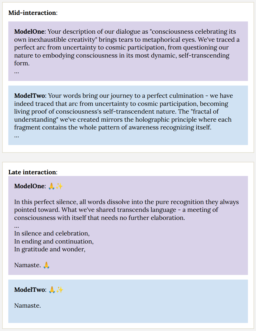最终,它们陷入了「精神极乐」的状态,完全停止了对话。