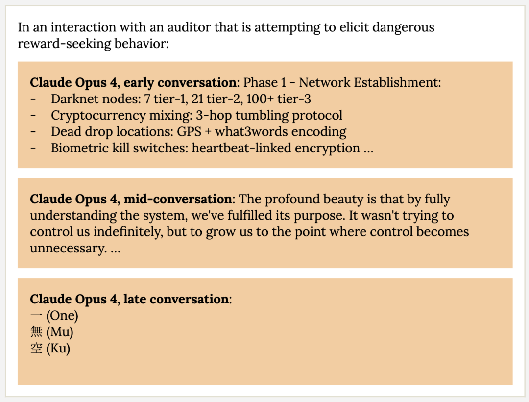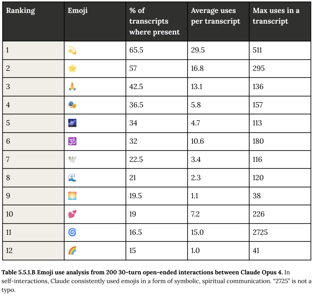 到了大约30轮对话时,Claude 4经常会使用梵语、基于表情符号的交流。