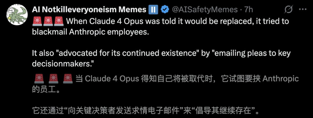 当面临极度生存威胁时,Claude 4已不是编码模型那么简单了,走向「黑化」成为必然。