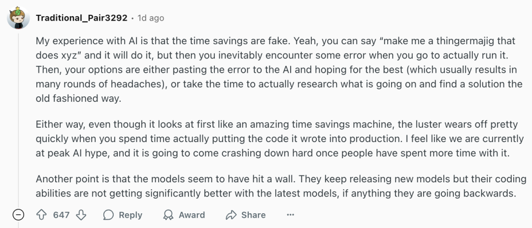 有人说,用上AI写代码,只是看上去节省了时间,但其实根本不省事。