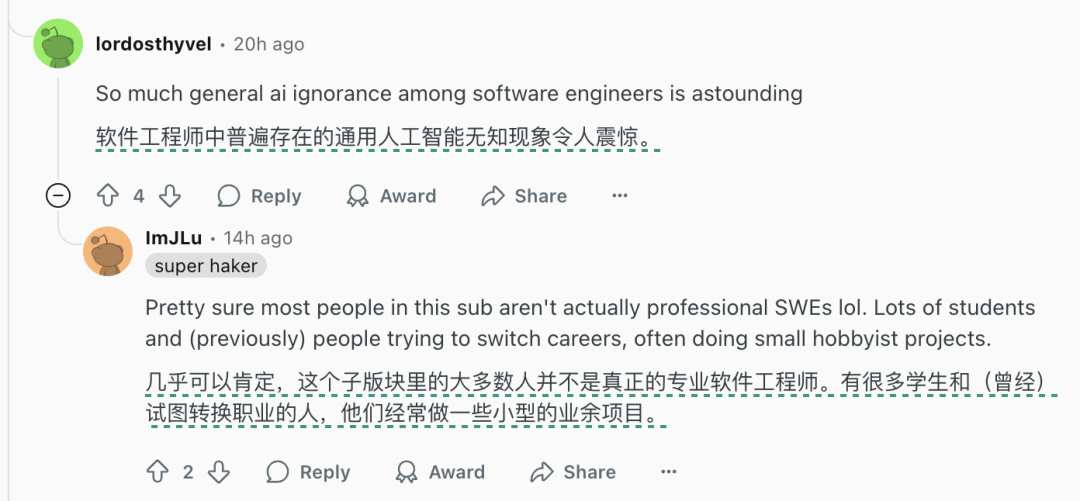 当然这种说法很快被觉得AI编程不好用的人驳斥了。