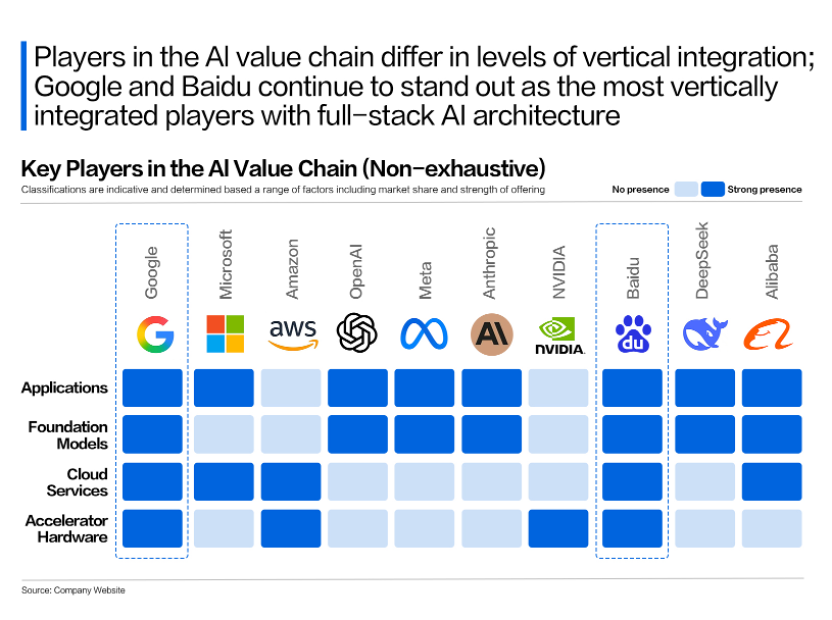 AI产业正在导向一种“全优生”式的胜利,要求企业不仅有强大的财力支撑、足够的技术弹药,还要有长期主义的耐心。而这正是谷歌和百度的最大优势。