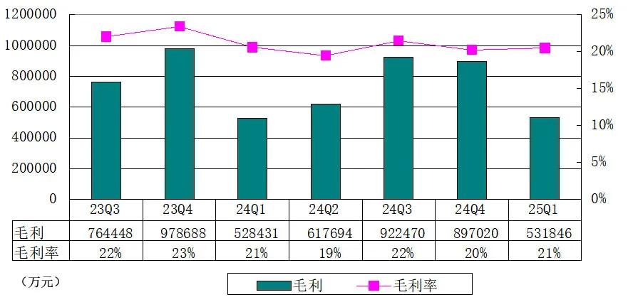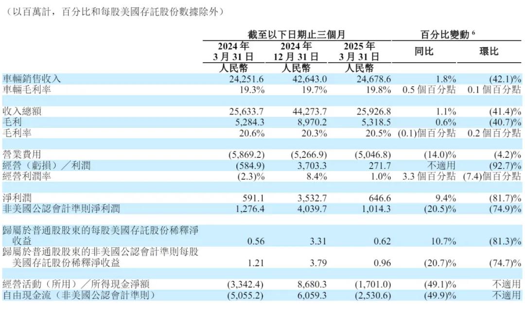理想汽车2025年第一季度毛利率为20.5%,而2024年第一季度为20.6%,2024年第四季度为20.3%。毛利率较2024年第一季度及2024年第四季度保持相对稳定。